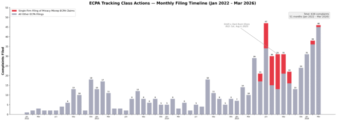 In fact, the 46 lawsuits filed in March 2026 represent the second highest number of ECPA-related filings since January 2022. The next three highest ECPA complaint filing months occurred between September 2025 and February 2026.